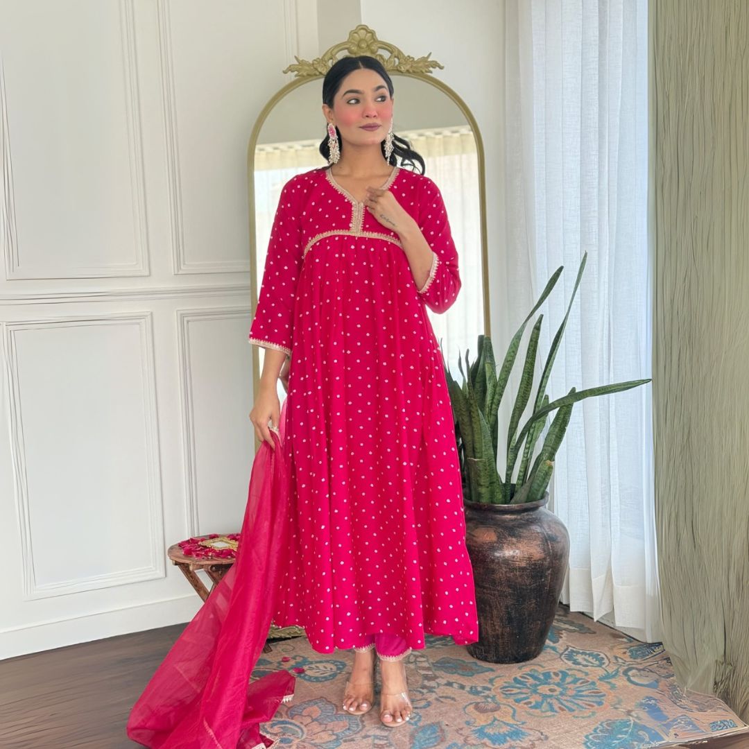 Add a pop of elegance to your ethnic wardrobe with this beautifully designed pink Muslin Silk suit set. Featuring exquisite embroidery lace work, this ensemble is perfect for festive gatherings, wedding functions, or elegant evening affairs.