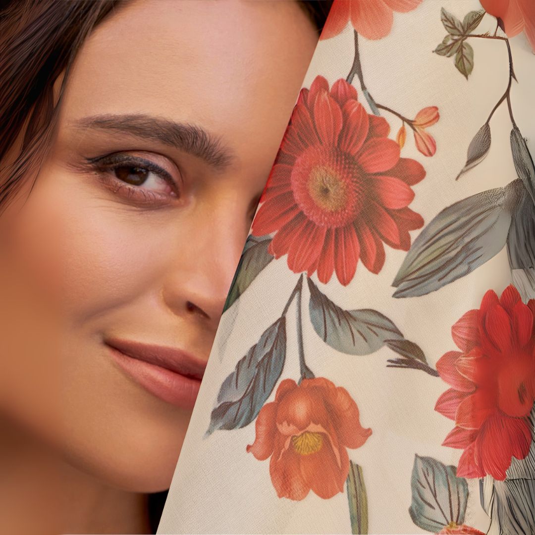 Ivory Bloom Embroidered Chanderi Silk Suit Set with Floral Dupatta